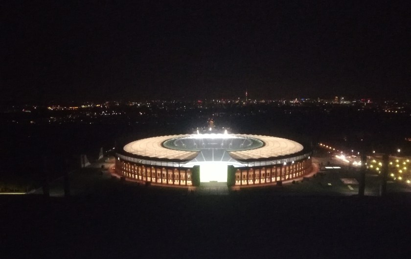 An diesem Abend hatten wir die Gelegenheit, uns auf den Glockenturm auf dem Olympiagelände führen zu lassen. Die klare Nacht bescherte uns atemberaubende Blicke auf die Hauptstadt. Aber der Clou war der Anblick des Olympiastadions. An diesem Tag hatte Hertha ein Heimspiel gehabt, und die Reinigungskolonnen brauchten bis weit in den Abend noch Licht. Wir hatten also besonderes Glück, das ich hier gerne teile 🙂