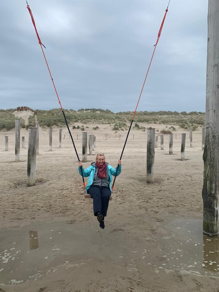 Mein Handy bleibt aus während die Landschaft an uns vorbeifliegt. Es ist 14:00 Uhr, als wir hinterm Deich von Callantsoog die Flasche mit dem „echten“ Sekt aufmachen und über die Holztreppe zum Strand laufen. Wir finden eine Schaukel und wechseln uns mit kindlichem Eifer ab. Es beginnt zu regnen, der Wind frischt auf. Jetzt ist es Zeit, das Chalet zu beziehen, das Swaantjes Schwester uns überlassen hat. Ich werde sofort ins „Geburtstagszimmer“ – das mit dem bequemsten Bett – geschickt, damit ich nicht vergesse, warum ich hier bin.