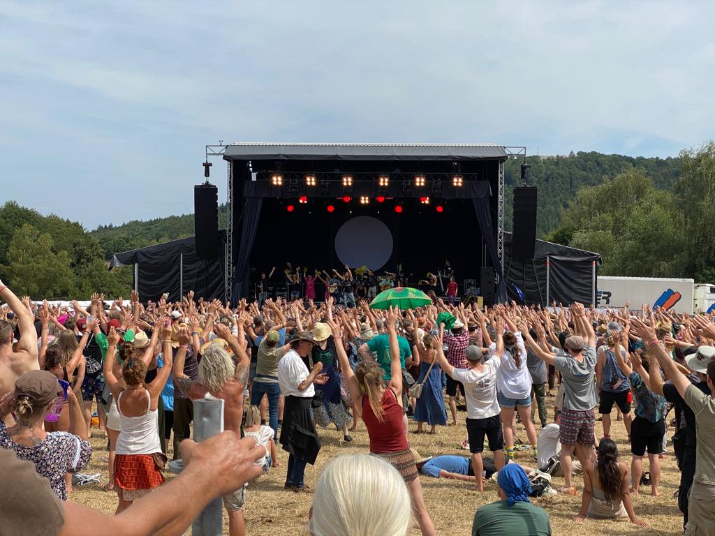 So geschehen vom 28. bis 31. Juli im Musikfestival-Kosmos, nur wenige Quadratkilometer unter freiem Himmel mitten auf dem Land. Mein Lieblings-Cousin und ich hatten uns vor der Pandemie Karten fürs Herzberg-Festival bei Fulda besorgt, wir wollten dort auch eine Freundin und deren Mann treffen und vier Tage Live-Musik, Woodstock-Feeling und ein bisschen Verrücktsein genießen. Der erste Schock kommt schon am Tag vor der Abfahrt: Die Freundin ist Corona positiv. Ihr Auto war schon voll geladen mit Camping-Gedöns, Blumengirlanden, farbenfrohen Fähnchen und verschiedenen Belustigungs-Beschleunigern, und jetzt das! „Ich werde das Auto bis nächstes Jahr nicht wieder ausladen!“ nimmt sie sich selbst feierlich das Versprechen auf einer Social Media-Plattform ab. Das bereits geplante Date auf einen Kaffee mit einem Bandmitglied von „The Magic Mumble Jumble“ will sie dagegen nur bis zum nächsten Festival drei Wochen später verschieben.